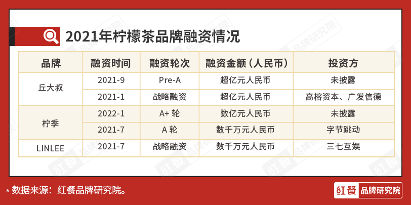 第3個階段是檸檬茶專門店越開越多,新秀品牌頻出。檸季、丘大叔等主打檸檬茶的品牌規模化發展——丘大叔獲得過億元Pre-A輪融資,檸季也得到字節跳動數千萬元A輪融資,讓這個品類越來越“被看見”。