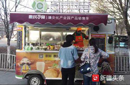 新疆百成鮮食供應鏈有限公司“早餐工程”負責人蔣智勇說:“早餐車銷售的食品均來自該公司以及烏魯木齊市馕文化產業園區食品企業,中央廚房統一加工、統一配送,統一價格、統一品質,同時,價格相對市場價便宜。”