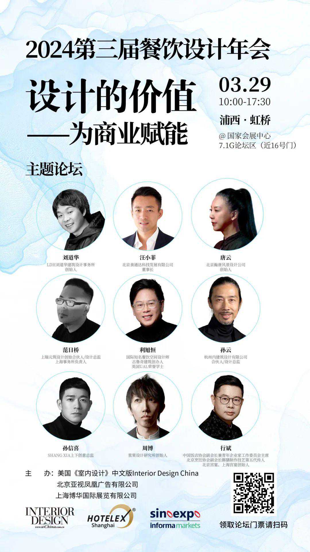 2024第三屆餐飲設(shè)計(jì)年會(huì),邀請(qǐng)了國(guó)內(nèi)外知名設(shè)計(jì)師,深耕餐飲設(shè)計(jì)多年,將分享的案例包括麻六記、大董、金悅、魯采、宮宴、全聚德、海底撈等,其中麻六記創(chuàng)始人汪小菲也會(huì)到現(xiàn)場(chǎng)分享,共同研討餐飲設(shè)計(jì)的前沿趨勢(shì)!