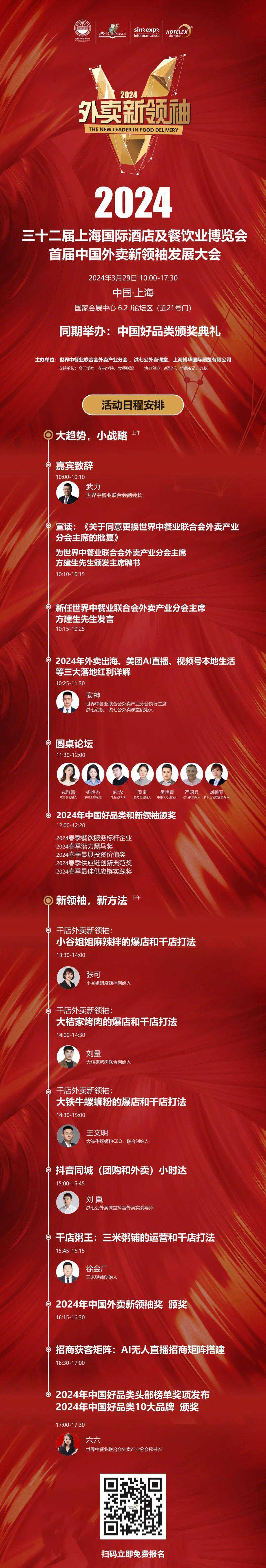 3月27日-30日,國(guó)家會(huì)展中心(@上海·浦西虹橋),HOTELEX第三十二屆上海國(guó)際酒店及餐飲業(yè)博覽會(huì)即將盛大開啟!“春江水暖鴨先知”,在這個(gè)春天,讓我們餐飲人一起齊聚,共同預(yù)見2024年餐飲新趨勢(shì)!